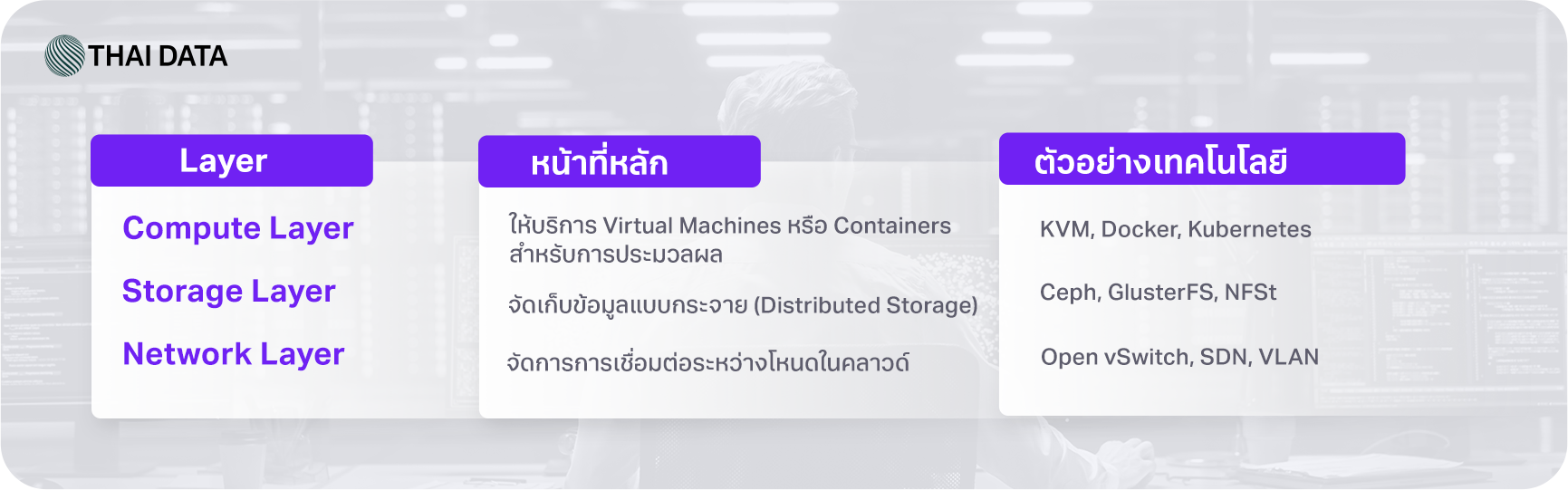 ทุกส่วนทำงานร่วมกันผ่านระบบ Automation และ API ที่ยืดหยุ่น ทำให้ Cloud Provider สามารถเพิ่มขนาดระบบได้ทันที โดยไม่ต้องหยุดการให้บริการ